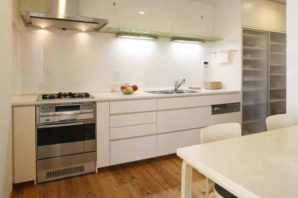 アパート経営されているKさんはその一部、ワンフロアだったアパートを、1,2階つなげてご自分達のメゾネット住宅にスケルトンリフォーム。目的は子供が小学生になるのを期に、開放的で明るいリビングにしたかったのと、各個室を充実させたかったから。 かくして、以前1階の暗いアパートのおすまいから、2階をワンルームとし、リビング、ダイニング、キッチン、他書斎として利用できるミニスペースを確保。しかし、いざとなれば仕切る事ができる建具内包済み。既存のテラスも撤去し、リビングから段差無しで出入りできる開放的なレッドシダーの木製テラスを造作しました。 また、リビング中央に新設した鉄骨階段から1階に降りると、1階は両脇に主寝室、子供部屋が振り分けられ、こちらも通常は建具オープンにするとワンルームとなり、2階ともつながり開放的な空間になってます。 それぞれ、収納などの造作で心理的にしきりになっていながらも、家のどこからも家族の気配がわかる風通しのよいおすまいになっています。